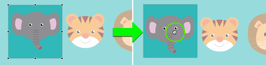 검은 점을 이용해 원하는 크기로 조정 후 마우스 클릭 상태(손 모양 마우스 포인트)에서 이미지를 이동해 위치를 잡아 줍니다.