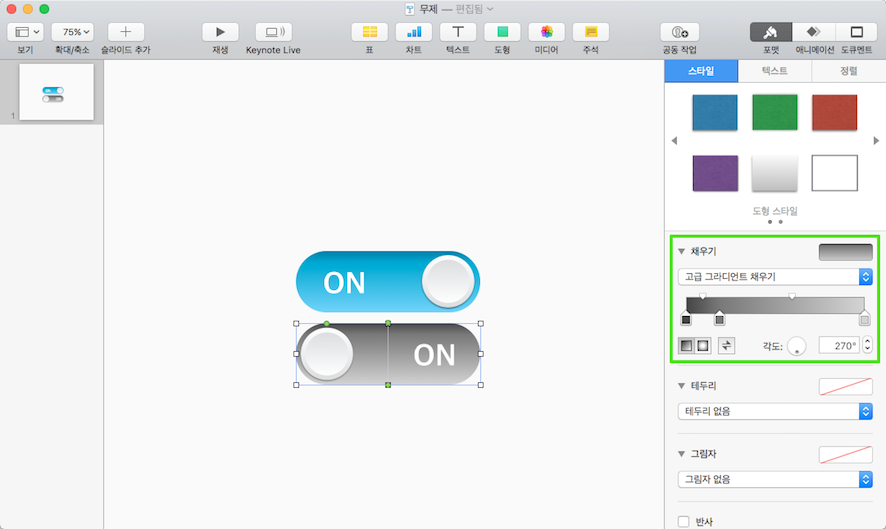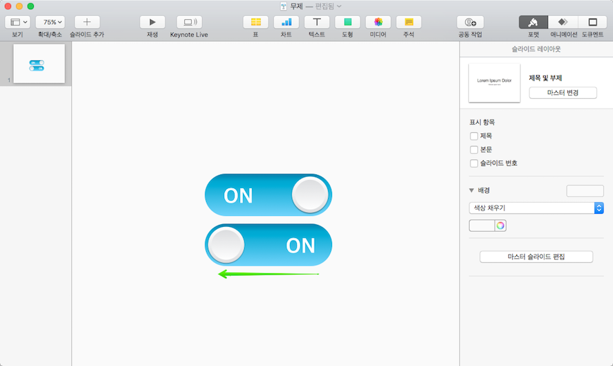 검색을 통한 무료 이미지도 좋지만, 키노트를 연습해 멋진 자신만의 환경설정 스위치 디자인을 만들어 보시기 바랍니다.