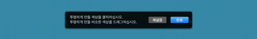 '투명하게 만들 색상을 클릭 또는 비슷한 색상을 드래그'하라고 나오는데요. 클릭만 했을 때는 단색만 선택이 되고, 비슷한 색상을 클릭+드래그하면 비슷한 색 전체를 찾아서 투명으로 만들어 줍니다.